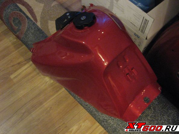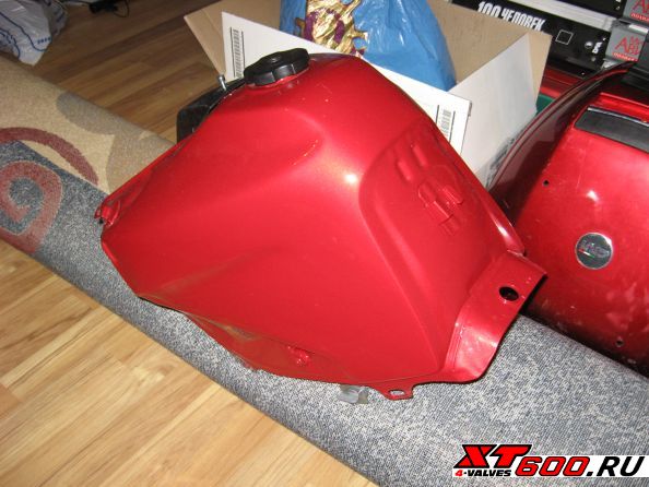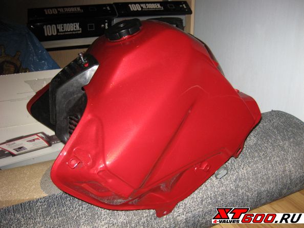 Свершилось чудо: мне исправили бак. Без разрезов. Бак был бит со всех сторон, три крупных вмятилы и куча мелких. И вот, вчера его вернули жестянщики - абсолютно целый, ровный, покрашенный в красный перламутр :)