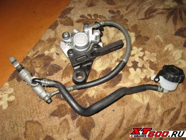 Пока основной вагон запчастей ещё в пути, перебираю тормозную систему ямахи. Когда она приехала, задний тормоз был довольно вялый (плюс согнутая его лапка), а переднего не было вообще.