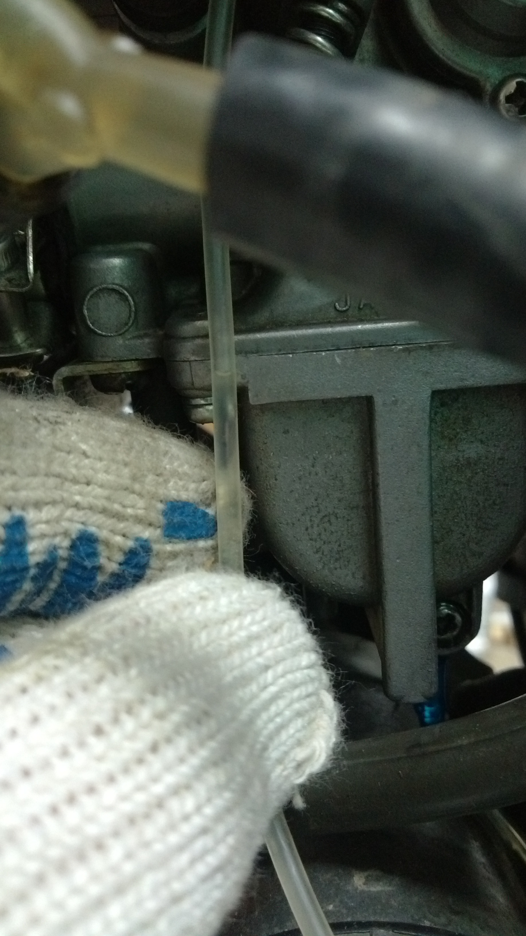 Motoenduro,На фотке - мой. У меня похожие симптомы. Только плохо работает, с перебоями и глохнет, если ехать внатяг. Вообщем с 1300-2500 об/мин перебои и заглохивания. Дальше - нормально. Карб мыл три раза, продувал 8 атм и все равно. Тут на видео по регрулировке уровня топлива на Xr 650R понял, что неправильно регулировал топливо. По трубке на снятом карбе было 7 мм от уровня крышки, а на поставленном и приподнятом переде мота уже 2 мм.Добавлено спустя 1 минутууровень на поднятом передкеДобавлено спустя 1 минуту_______________________Добавлено спустя 2 минутыуровень при обычном положении мотаДобавлено спустя 2 минуты________________________