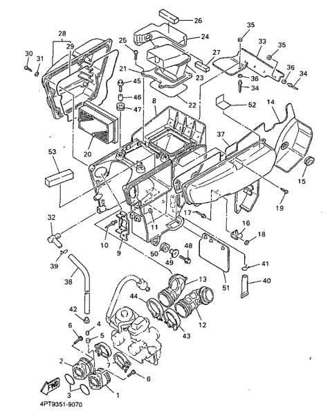 Sasa:А отрезок шланга с маленьким филльтром должен болтаться, судя по рисунку. Да, должен болтаться и лучше этот фильтр с крупными отверстиями заменить на какой-нибудь более качественный. Иначе в камере второго карбюратора над вакуумной мембраной будет скапливаться пыль. А если собираешься преодолевать броды, то лучше эту трубку, как и все трубки идущие от карбюратора, вывести под седло.