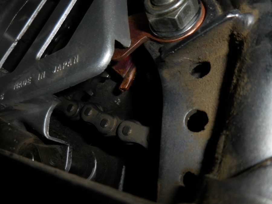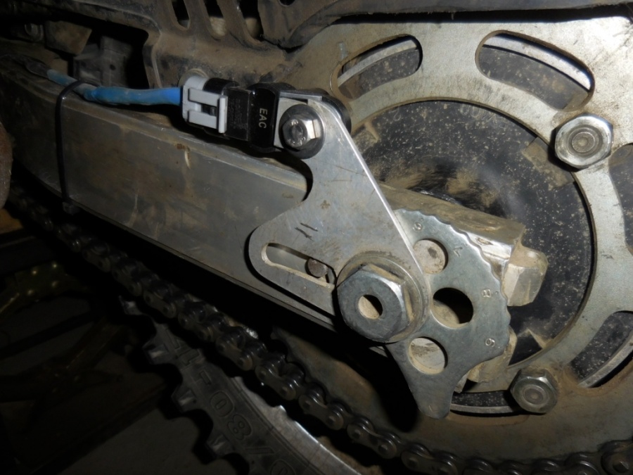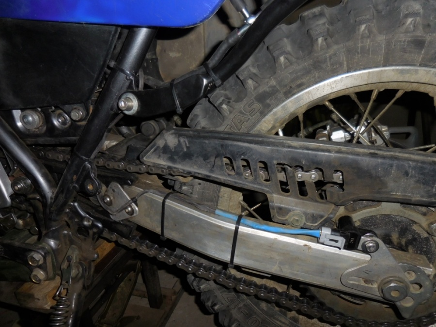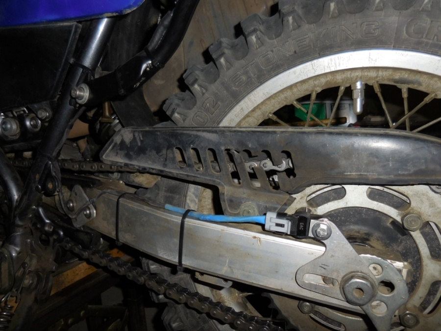 Система автоматической смазки. Датчик фаз магнитный от ВАЗ с самодельным кронштейном. Перистальтический насос. Блок управления - собственного изготовления. Кнопка на руле для принудительной подачи/прокачки масла. Емкость под масло - бачок от ВАЗ. Ну и "форсунка" - трубка медная на медном кронштейне припаяна. Смазка каждые прибоизительно 8/ 4/ 2/ 1/ 0,5 км (при диаметре колеса 17"). Размер капли предварительно регулируется. Два режима для сухой/мокрой погоды.