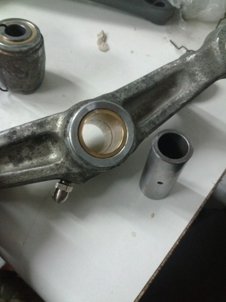 Вообщем, у меня большая выработка на центральном болте ( что крепит маятник к раме) и большая выработка на маленьком рычаге (тот, что самый нижний) а также стала отлущиваться поверхность полировачная (или какая она там) во внутренних отверстиях рычагов. Решили выточить новый болт с нормализацией и твердостью 35 единиц, ну и шлифануть пальцы. Вместо внутренних втулок сделать бронзовые. Вопрос: бронзовые подойдут или раздолбаются быстро?