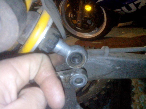 решил заменить этот подшипник -шарнирного типа( ТТ 600 S) ...помыкался и не нашёл на мегазипах и тп....а у товарища случайно увидел дохлый аморт от хонды ХР 250...вот с него и выбил подшипник с верхнего отверстия аморта...и на мегазипе он всегда есть и стоит всего 700 р( а на тт где то потом нашёл ,на германском сайте стоит 2 крубля