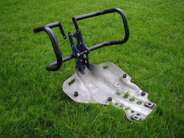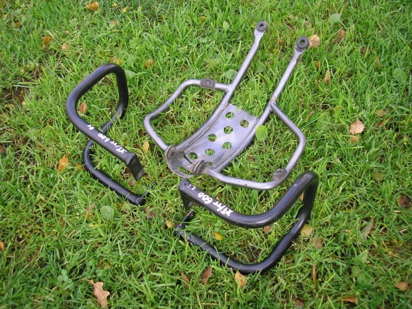 ГАЛИНА, переделать возможно потребуется только переднее крепление - у ХТ600 в этом месте проходит масляный шланг. Работа элементарная. Вот фото защиты ТТ с передним креплением двигателя и боковыми защитными дугами в сборе и штатной трубчатой ХТ для сравнения.
