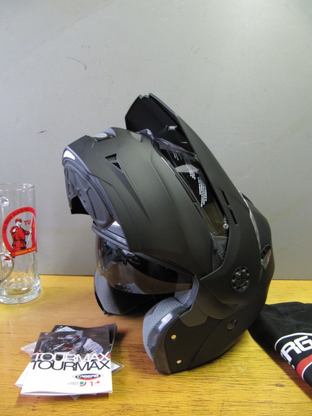 Сегодня почтальон привёз мне Caberg Tourmax ( я решил сделать себе любимому новогодний подарок). Теперь буду сравнивать со своими Ноланами, но до полноценного теста дело нескоро дойдёт. На голову сел достаточно удобно для " неутоптанной шапки". Пока понравилось уплотнение стекла, добротная фиксация откинутой вверх "челюсти" через кнопку ( похоже мелковатую для руки в перчатке). Сразу не понравилась кнопка открывания "челюсти"( у Нолана на порядок удобней, хотя возможно это - дело привычки, да и туговатое всё пока на новом шлеме). Так же смутило отсутствие перекрывания передних вентиляционных каналов - дуть будет постоянно, а погода в Чухонии к этому не всегда располагает. Козырёк съёмный - можно использовать как обычный модуляр. Опасался центрального расположения системы управления солцезащитным визором - у Лазера из-за такого расположения чётко посередине этого визора образовывалась полоса пыли, попадающей через щель. Надеюсь, тут так не будет - ползунок сдвинут ближе к затылку и визор до щели вроде не доходит. Шлем предусмотрен для встроенной систему bluetooth ( не люблю навесные), если он мне понравится в деле придётся покупать ( но цена не радует). В общем время расставит всё по местам, а пока буду обмывать.