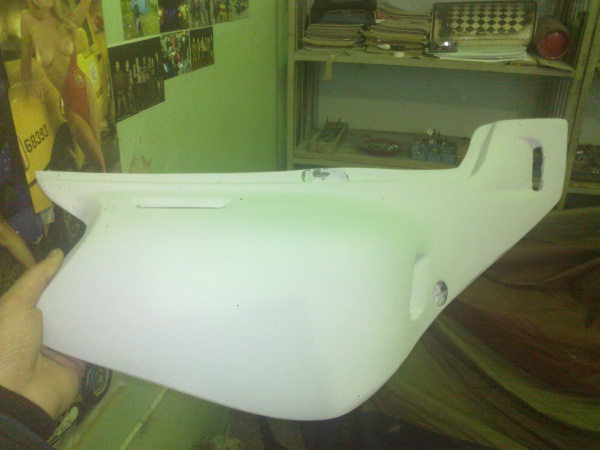 Так как зацепил люлю и не хотел резать стандартный боковой правый пластик пришлось мастеру заказать копию из стеклоткани, осталось матрица по которой можно наляпать таких еще хоть тридцать штук. По прочности не уступает родному а может и еще прочнее. Так что если кому интересно то можно сделать под заказ цена 1500 р. + пересыл