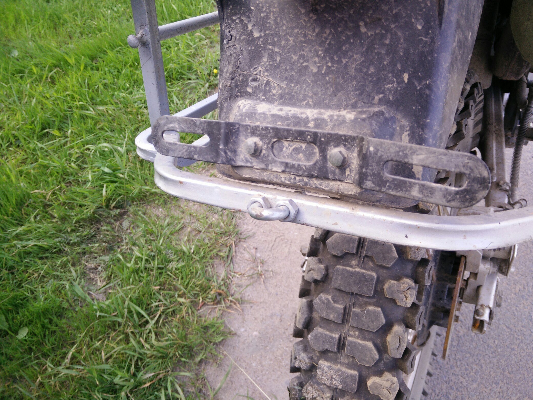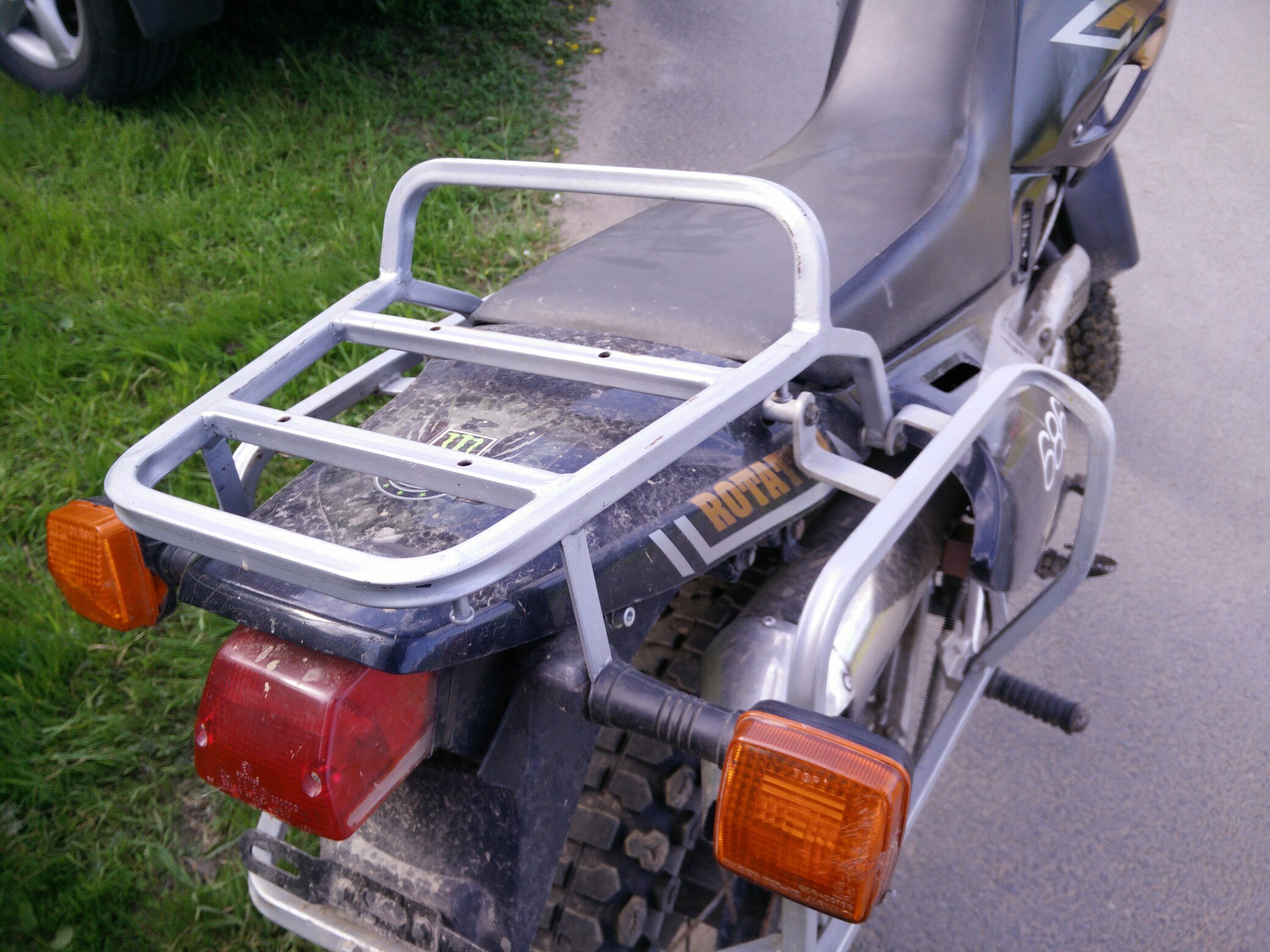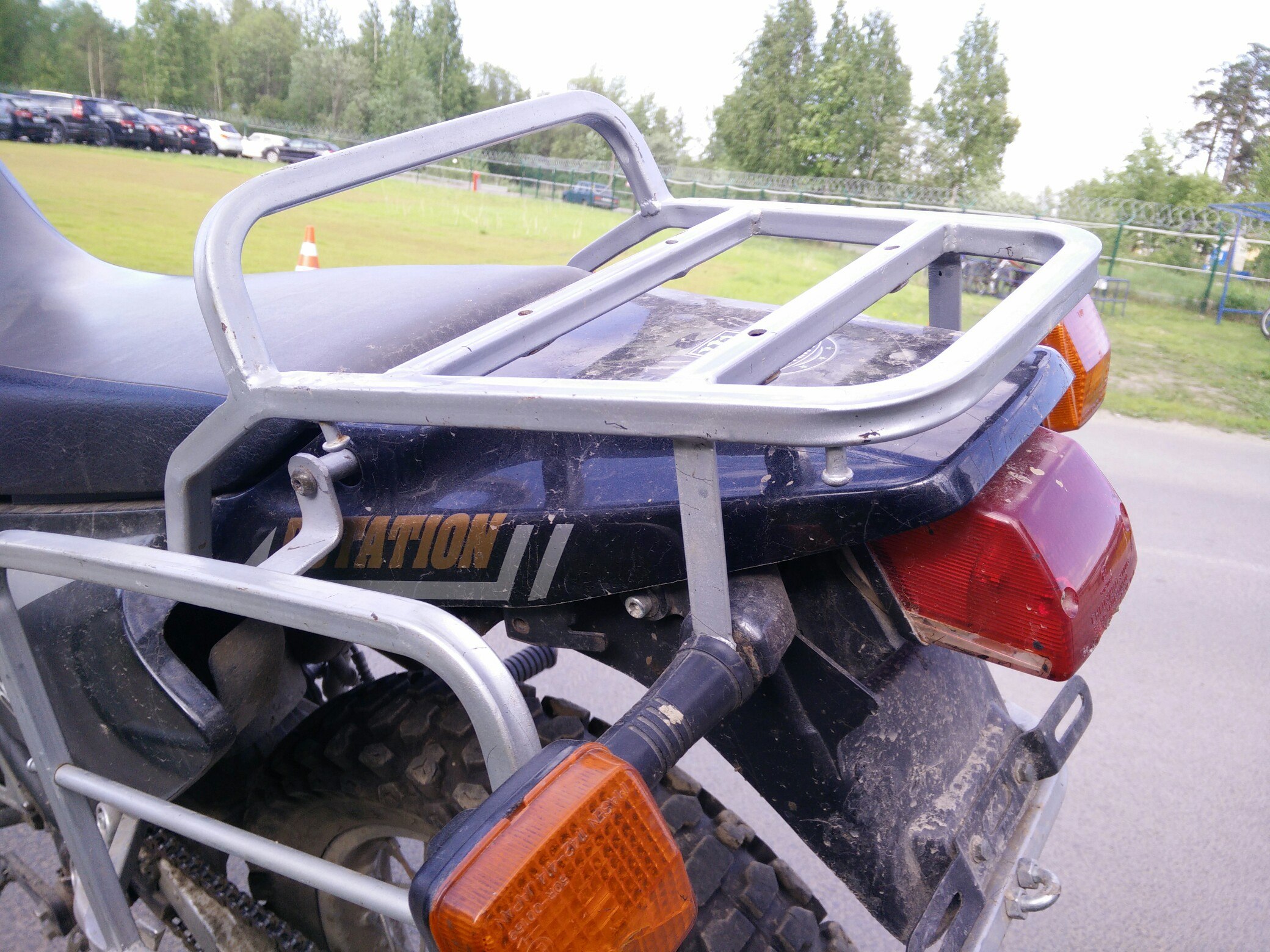 Здесь же заводской багажник, ни под что конкретное видимо не делали. Можно поставить площадку под центральный кофр и с ним ездить, Там отверстия есть. А так примотал сумку справа, слева канистру - и вперёд