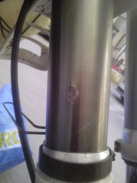 gazoil: как варинт оловом или замазать чем нибудь типа эпаксидки.и обтянуть пленкой карбоном или просто зачистить и покрасить.Обнаружилась с открытием сезона на стакане дыра, не сквозная ... пока что.. Не понимаю ни откуда взялась - от камешка отскочившего? от тормозухи капнувшей (она аккурат под бачком, но бачок не течет) ? Ну и главное что с ней теперь делать - есть ли способ остановить процесс, или хоть замедлить его? Выглядит гадко, довольно глубокая, покрытие слезло, аллюминий рыхлый. Буду признателен за совет. Другой стакан тоже не фонтан, но там понятно, что камнями побило и не так глубоко проело покамест. Покрасить их что ли? Или новую вилку искать (( Вилка Kayaba, перевертыш Yamaha TT 600 S 1996 |