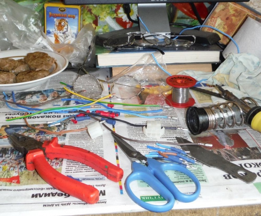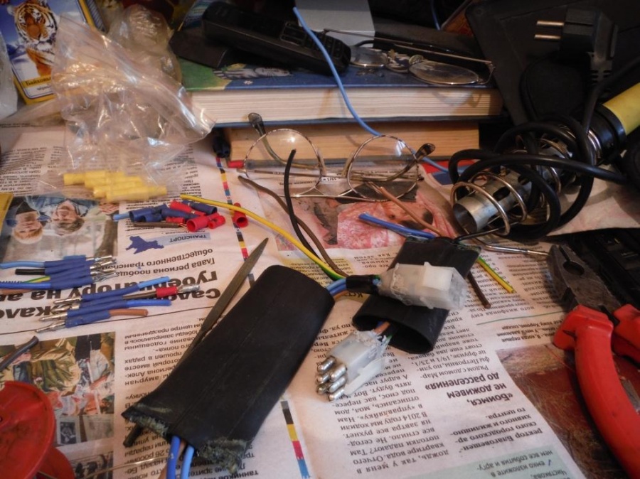 вот фишка самопаечная в общем в прошлом году в дороге произошло полное отключение электрооборудования. Еду и тык! - всё погасло и заглохло. - такое было уже разов 5 после покупки мотика, 3 раза в Германии и 2 раза в России. - И давно уже всю проводку прозвонить, ибо в чём-то прикол-то есть? - Только звоню провода, и всё в порядке. Чё за хрень?)) - Остановишься, попинаешь колесо))) и всё заводится как всегда, отлично. Ну и тут уже в Барнауле в 2015 летом, заехал к друзьям, и поехал в центр города - и встретил мотоциклиста около заправки, к ним и ехал, и тут бац" - и всё погасло... - попинал колесо - завёлся - и я заехал у ним туда в гараж, где у них мастерская - и тут Бац! и всё окончательно потухло. В общем, там много мы что пытались оживить его... - нифига ни кажет ни одна лампа алладина, ни даже лампочка иллича. И тут я головой ел яблоко, и туда мне мысля пришла - попробовать отвёрткой со стартёра! - Перемкнул клеммы - крутит стартёр движок))) - ключ повернул зажигания, - перемкнул - мотик забухтел... Ну - всё понятно, где-то или обломыш, или клемма. - Прицепил к клеммам стартёра провода, чтоб напрямую заводить. Всё-таки хороший мотоцикл Ямаха ХТ 600 Тенере 1987 года, и стартёр есть, и кик!!))) - И.. - И тут я понял что я идиот, и долго ржал с себя.. - и когда чувакам рассказал почему смеюсь, то хохотали они до слёз. Ибо я просто кикнул один раз кикстартёром и мотик завёлся. - Вот что значит человек, занимающийся, музыкой, литературными какими-то исследованиями, стихами... - Мысль идёт кружным путём, в полном смысле с выражением - "Нормальные герои, всегда идут в обход))) - Вобщем, поехал я на место стоянки, - и во во дворе и отремонтировал электрику. Это была фишка 6ти-контактная от замка зажигания - были замкнуты и перегорели две клеммы, и пластиковые фишки спаялись. - Фишки папу-маму дал мне Евгений, у которого я останавливался, у него сервис по Газелям был. В общем, всё я перепаял, всё отлично работало. Но эстетическое чувство грызло мне сердце, и сердцу было больно, оттого что фишка газелевская большая - и выглядит не по фэншую. - И я купил в Благовещенске в электро-товарах корпус фишки с контактами, - провода - и паяльником спаял всё.- И потом посмотрел - и подумалось мне, что тут ток большой на замке зажигания, - и клеммы хлипкие.. - и купил другие, не плоские а цилиндрические.. - И всё перепаял и фишку переделал, и смазал все контакты вазелином (ибо негигроскопичен он - а циатим не нашёл, или технический вазелин) - и соединил фишки - и на провода ещё куски от камеры велосипедной как защиту от воды - и на фишку при соединении купил пачку презервативов, чтоб при соединении обмотать и было полностью герметично. Ибо выход с фишки проводов - я закрываю набивая туда герметик - который жестко фиксирует провода. И всё перепаяно на мотике, места скруток пропаяны и термоусадочной трубкой на два слоя термоусажены - и готовы к тысячам км пробега.