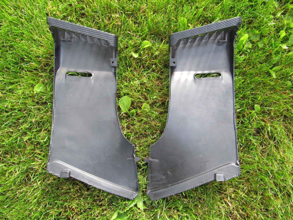 "эти накладки обтянуты под карбон неслучайно - со внутренней стороны на одной видны следы достаточно грамотного лечения - похоже, что сетка вплавлена. Но все крепления целы и на месте, на мотоцикле смотрятся отлично. На первом фото видны две "лишние" точки - это пара капель дождя упала, заметил уже когда фотки прикреплял"