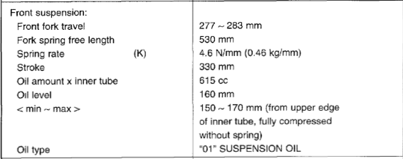 AlicFat: тут вилка 43мм (стр.4), год 97й, и масла таки 615 (стр.17) у меня есть этот мануал, но на него не опираюсь т.к. там еще есть отличия от моей. прям сейчас не вспомню что за отличия но уже раз налюбил себя с этим мануалом. Редактировалось: 1 раз (Последний: 24 декабря 2016 в 21:25)