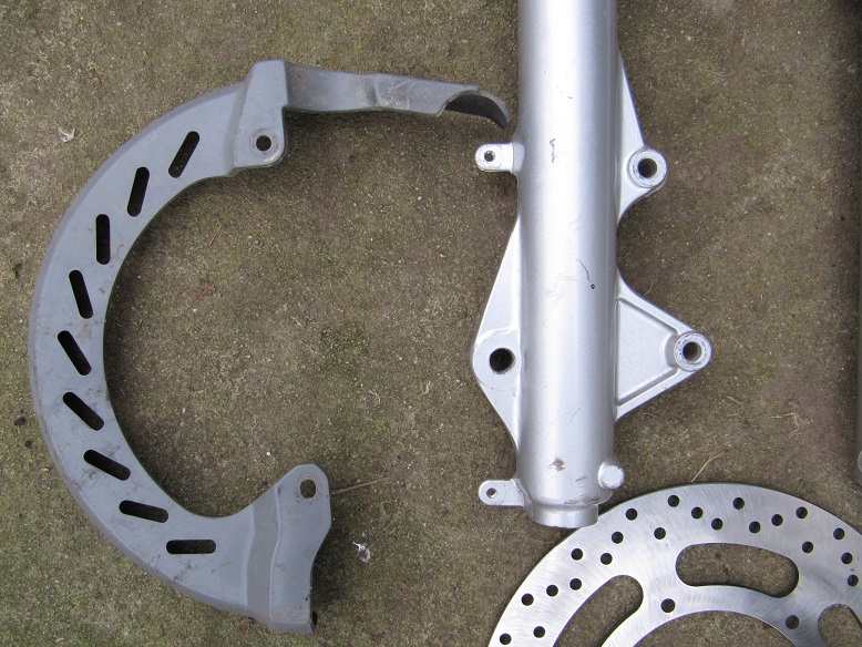 Учтите, что защита от ХТ до 1994 года выпуска рассчитана на меньший тормозной диск ( 267 мм ), чем у вас. Так что если и корячиться, то с защитой от XTZ660 ( 1991-94 г.в.) c диском 282 мм - ваш размерчик. А закрепить её можно достаточно просто - всего-то пара полосок металла под болты крепления суппорта. Размер подогнать и подогнуть их прямо по месту. Есть у меня от неё и вилка, и защита, и диск. Могу фотку для наглядности сделать если нужно.