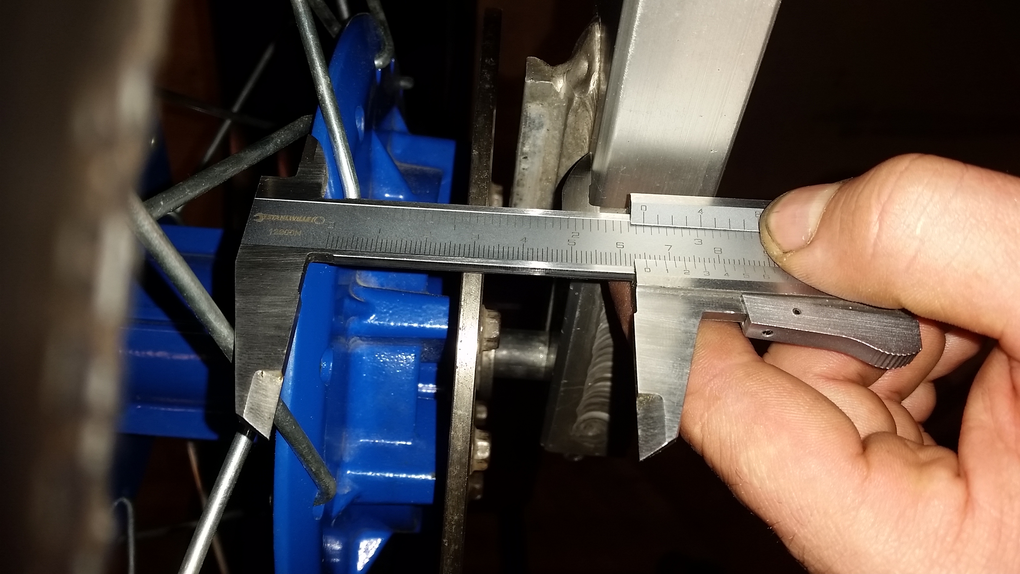 android, спасибо! Все никак не решусь начать спиливать кронштейн суппорта... У меня получается 65мм до внутренней плоскости бурта ступицы, если центра совпадают. (см. Фото). Не заморачиваться не получается