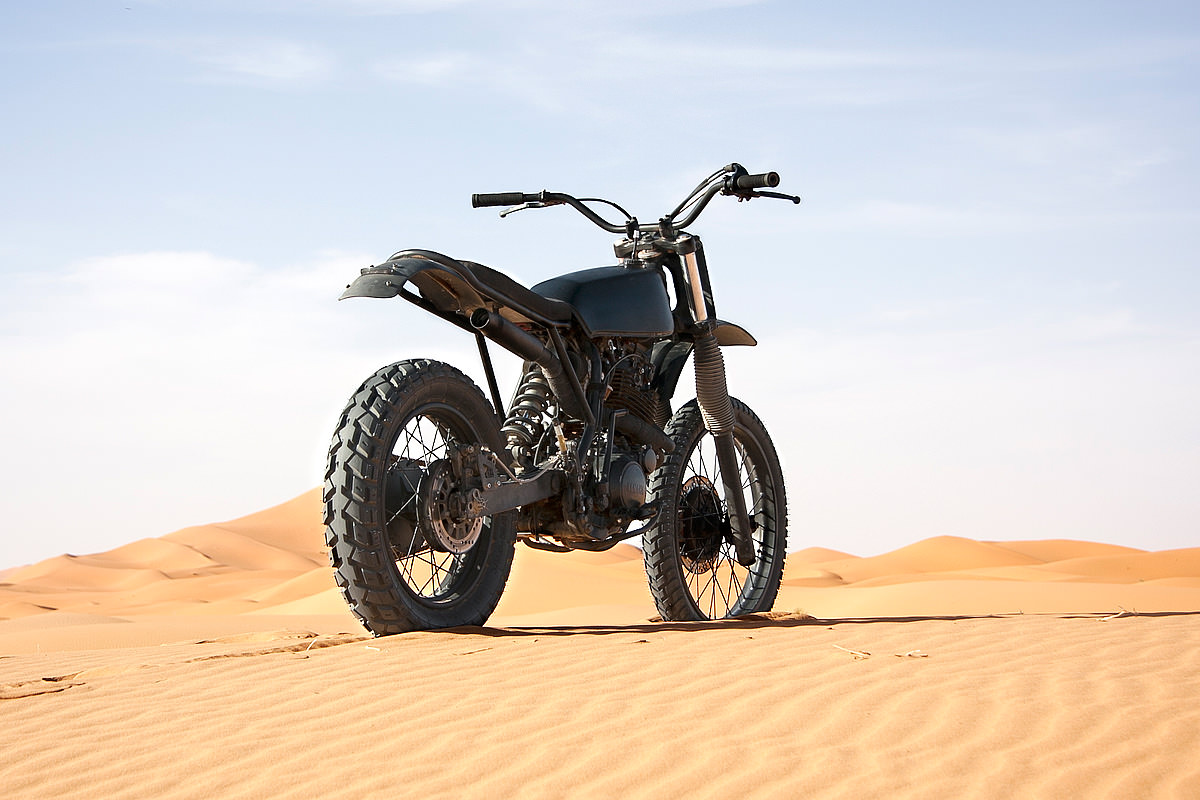 It’s an ‘extreme desert challenge‘ that’s held in Morocco rather than Libya, with seven brutal stages running over 2,400 kilometers. “There was some space left over in our 6×6 truck,” says Boy. “As a bike builder I didn’t want to take a stock bike, so I started this project.”