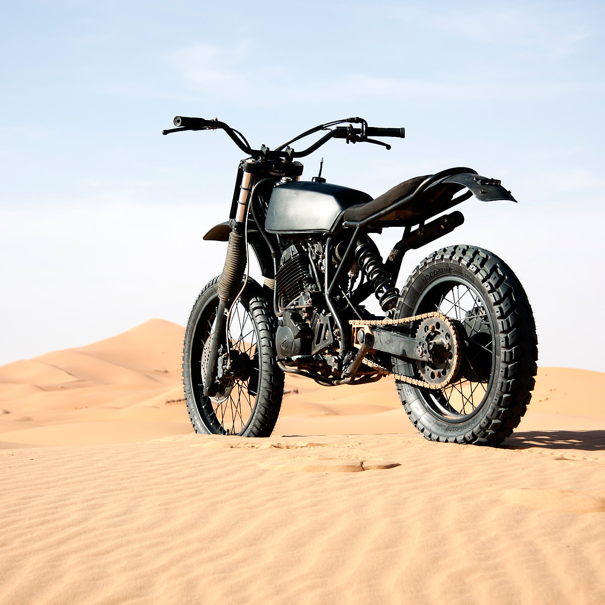 The only thing left was to fit Heidenau K60 rubber and apply a fresh layer of flat black powder coat. It’s now the perfect machine for ripping up the dunes—or the dirt tracks of rural Holland.