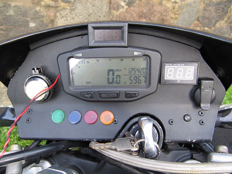 Yama: У нас скоро тоже "светлый праздник" - госдеп назначит нового управляющего нашей заморской колонией. Так что вопреки Москве солнце какое-никакое включили. Посему выкатил мот из гаража и сделал несколько снимков. На показания "синего" вольтметра не обращайте внимания - подключил к нему аккумулятор литиевый....я позвонил в Москву и мне сказали, что солнце Вам в ближайшую неделю не включат, мол у нас скоро выборы и самим его маловато... Зажигание выключено - Зажигание включено - Вот так выглядит "неправильный" вольтметр в выключенном состоянии - ... и во включённом - Думаю, разница очевидна. В том, что на него не надо всегда смотреть, согласен. Но считаю, что для контроля показаний должно быть достаточно беглого взгляда на любой прибор. Значит, чем лучше читаются показания - тем безопасней для движения. А у " красного" при дневном освещении все сегменты сливаются. Пробовал плёнку тёмную ставить - не помогло. Так что буду его менять - наши руки не для скуки .Я не "скАчу"...!