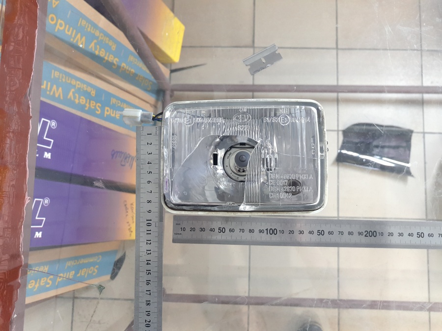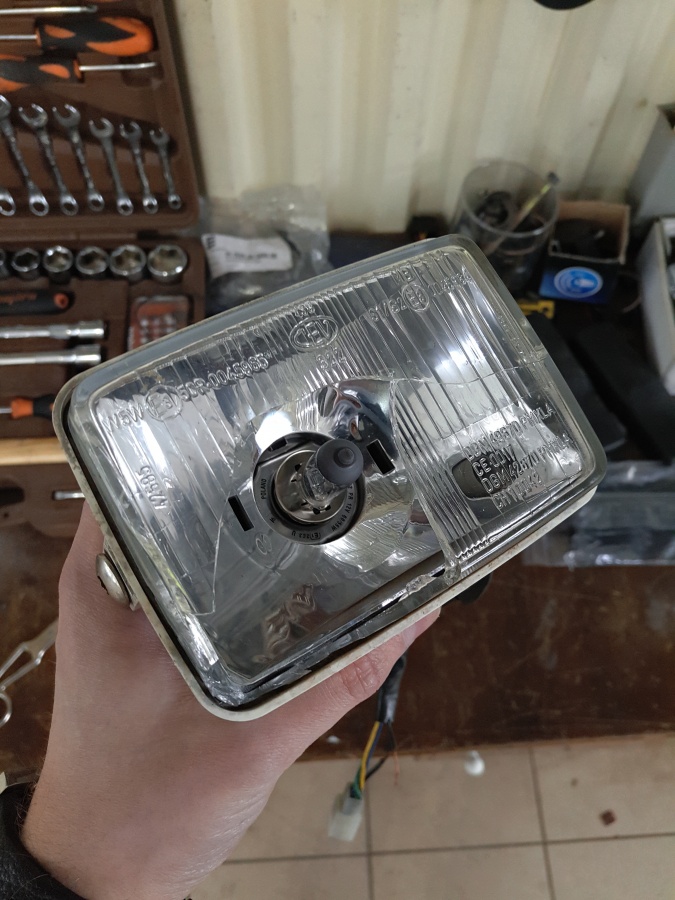.Сама фара итальянской фирмы CEV, как и твоя. Но видимо оригинальную стекляху расколотили и на силикон посадили пластик ( подошёл один-в-один). Гнездо не под Н4, видимо стояла какая-то смешная лампадка и пластик с ней справлялся. Наверняка подобные на китайских мопедках найти можно.Я не "скАчу"...!
