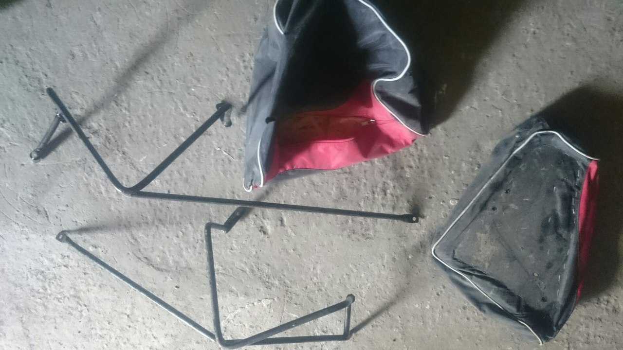 центральный багажник с креплениями для боковых сумок, кофр, боковые сумки.