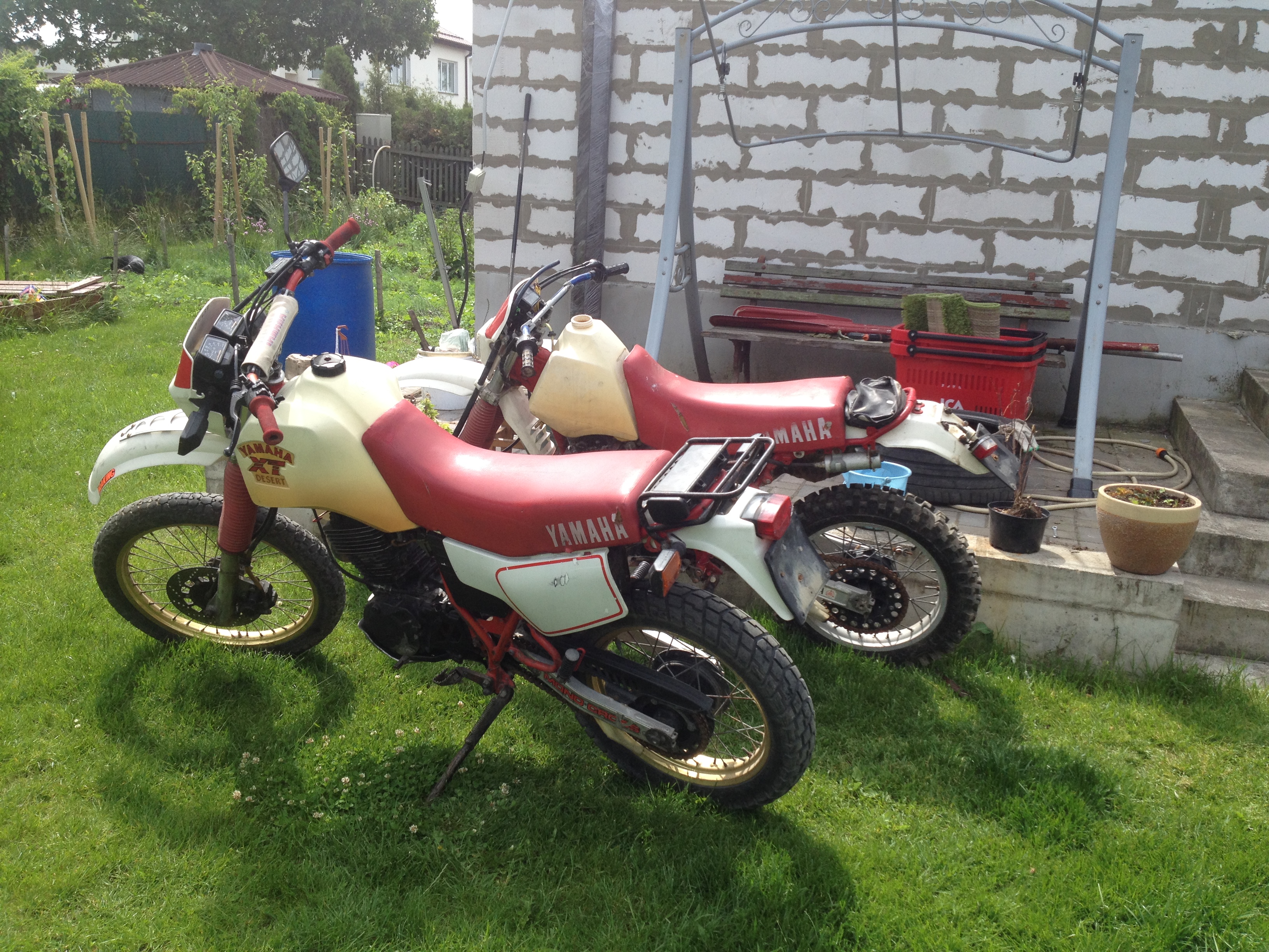 Думаю это ХТ 1984-86 года выпуска. Бак тюнинговый Асербис, похоже, что и заднее крыло тоже ( в стоке оно составное). Смотри код на двигателе, на раме - скорее всего найдёшь 43F. Поройся во взрыв-схемах на Мегазипе - https://www.megazip.ru/zapchasti-dlya-motocyklov/yamaha/xt600-4274/xt600-30637 . Тебе, как хозяину, совпадения в деталях виднее будут.