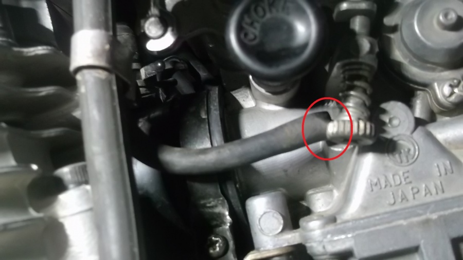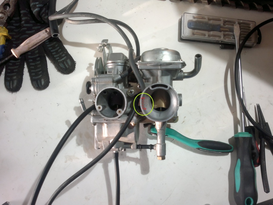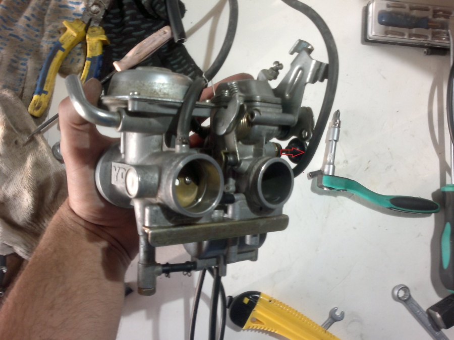 Александр: У меня ни на одном из четырёх карбюраторов этих трубок просто нет. Как и мест их подсоединения.Куда у вас идут эти трубки? Задняя часть вторичного карбюратора - Винт холостого хода удалил для лучшего обзора - Я не "скАчу"...!