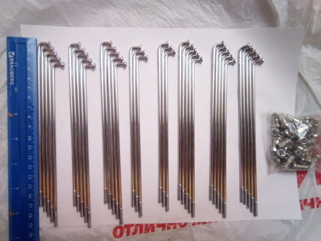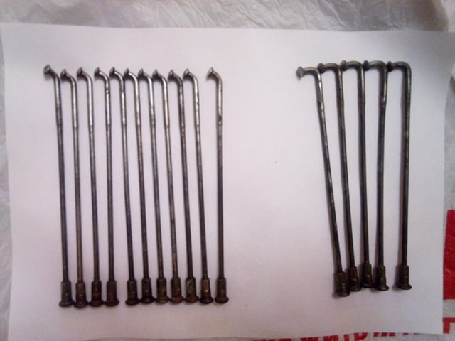 Спицы на заднее 17 колесо XT600E оригинал б/у - 140 руб/штука. Есть 11 одного вида и 5 другого. (См.на фото)