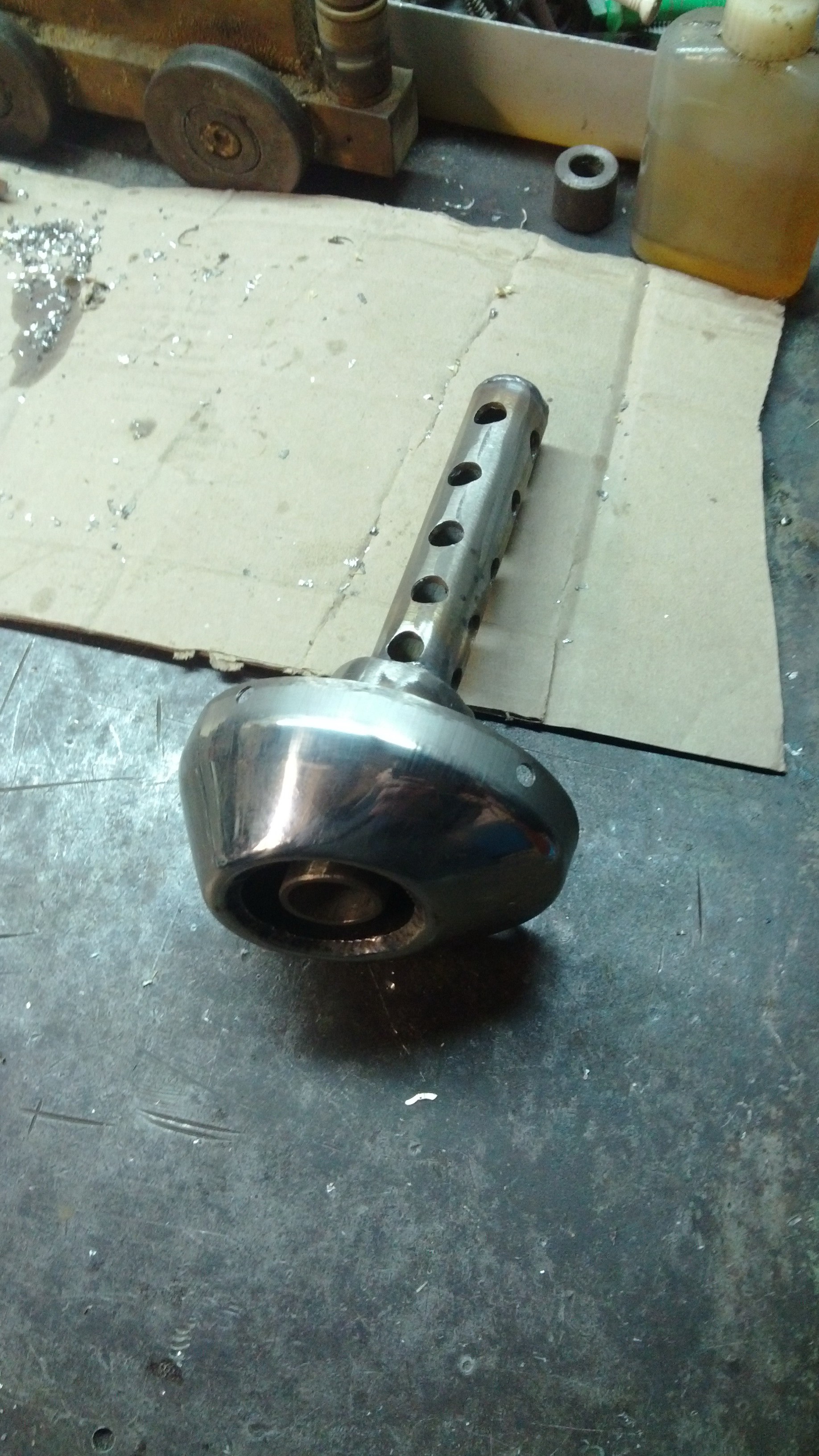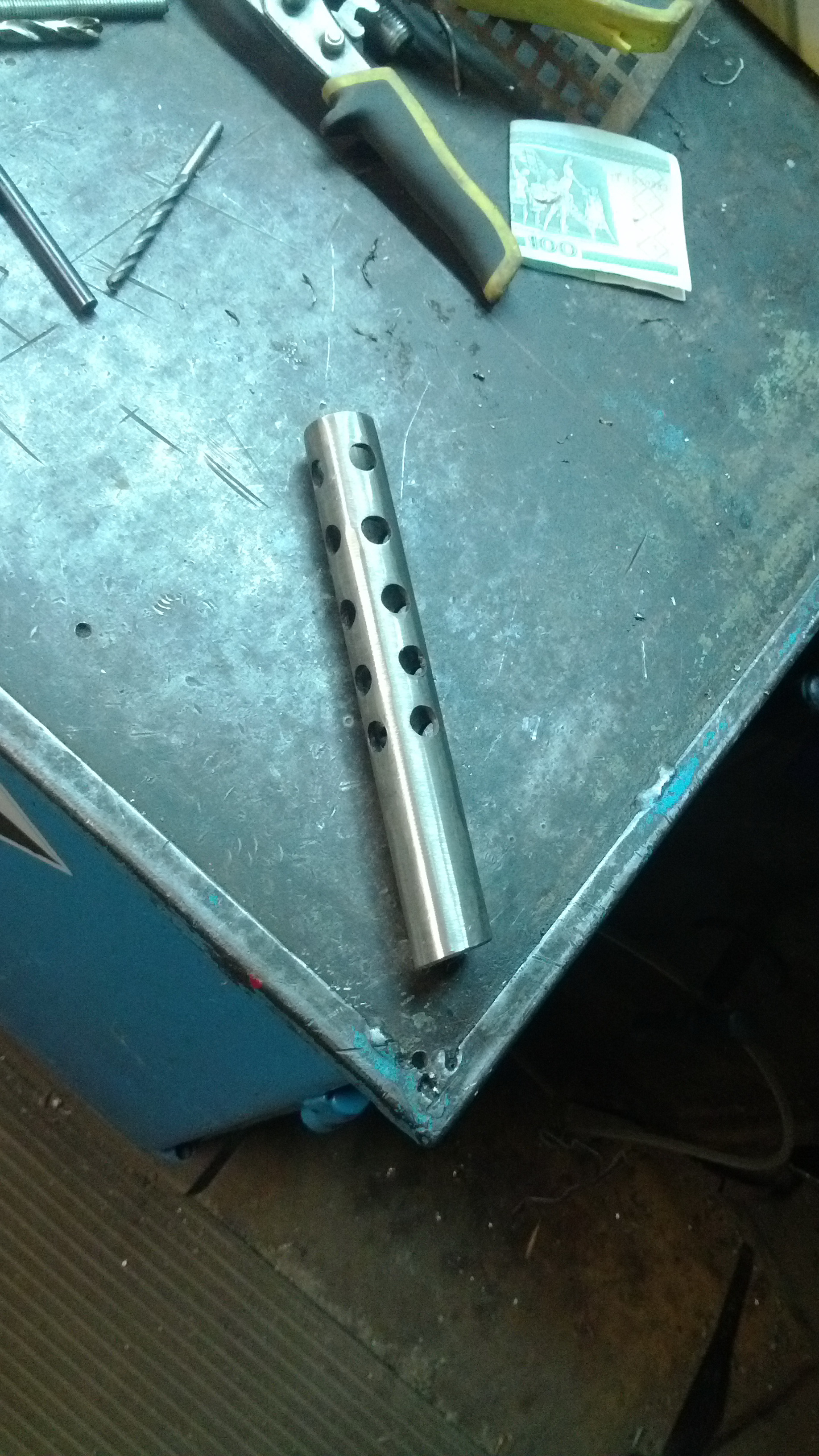 Вообщем сделал такую вешь, звук стал намного тише... похож на родной, как со стандартным глушителем. Посмотрю так, если что, то можно будет больше отверстие сделать внутри этой трубки.