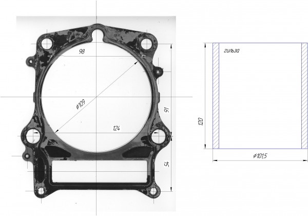 AlicFat: сравнил со своей - отличается. можно ещё попросить скан прокладки под цилиндром, самого цилиндра высоту и наружный диаметр нижней части гильзы?Busse: в таком исполнении пойдет? попрошу промерить расстояние межцентровое между шпилек головки и скан прокладки Редактировалось: 2 раза (Последний: 24 сентября 2013 в 20:32)