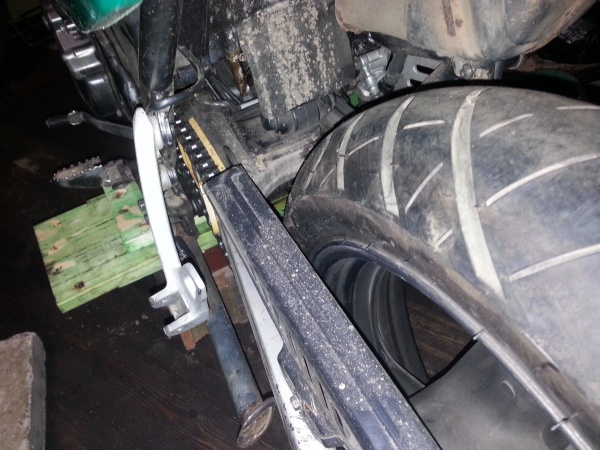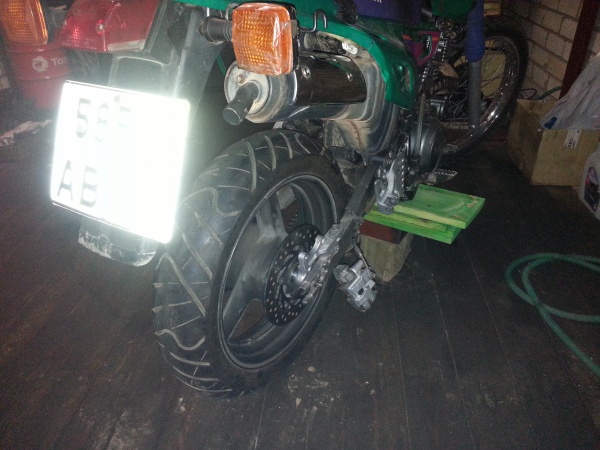 Дело было вечером, делать было нечего.. Снял свое колесо и примерил штатное от хонды cb400 superfour