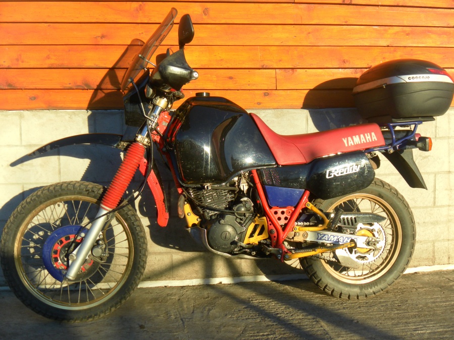 Но все по порядку : из иноземцев что у меня были : XTZ 660 Тенере , XL 600 Трансальп , XTZ 750 Супер Тенере , этот пожалуй самый необычный и нтересный (и любимый ) Ни с одним мотом я столько не возился . Признаюсь : посещали мысли (когда уж оч сильно уставал) "когда же блин все это закончится ?" А может ну его на ... фиг ! Но проходил день -два-три и все начинось (продолжалось) вновь . НО Немного предистории : когда я увидел "ЭТО" в объявлении - удивился откуда такой Динозавр да еще в такоой совершенно дикой раскраске ... (для справки : родной окрас 1986г.в белокрасный) По прошествии недели понимаю что "зацепило" , ладно думаю хр... с ним поеду просто посмотрю на это чудовище . Приехал в Талдом , хозяин парнишка 22-х лет ,щупленький вывез из деревянного гаражика ЕГО (или ЕЕ) ..... и у меня как говорят : екнуло . Осмотрел - Облазил все что мог , (и что знал ) резина цепь,звезды,колеса,спицы,перья,качалка-маятник без каких либо видимых изъянов . Завелся как говорят с пол тыка ( и с кика и со стартера ) и взревел как буд то в пустую бочку ударило с десяток кувалд - я внутри содрогнулся с ужасом представив как поеду на нем домой !!! Владелец предупредил что гонит масло с колечка на эл.стартере - я прекрасно понимал что ЦПГ убита . но я не предполагал что совсем . Сели - поехали ... тянет как паровоз ! Странно как то поршневой нет а он "валит" 155 км . Коробка пер . работала нормально . В итоге : из минусов Нет одного зеркала , На цепи ГРМ три щелчка (просто зачастую пружина не досылает последние вздохи , оказалось два) отовсюду течет масло , НЕТ АЙРбокса - сосет напрямую и это самое грустное , мот совершенно голый и на учете не стоял. Из плюсов он мне нравиться и я хочу его купить ... Если на фото убрать лобовик ,защиту рук и кофр то можно увидеть каким я его пригнал .