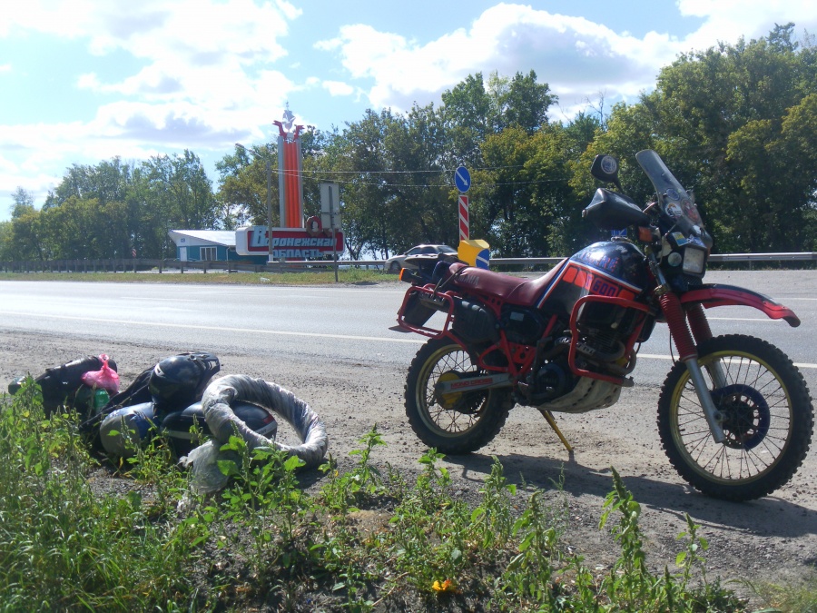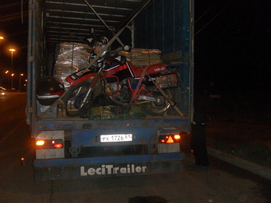 Теперь о самом  трагичном ... Когда вернул компрессию и стал грузить по полной (где слабо там и рвется) зашелестел низ шатуна - Когда я убедился в том что чуть слышный звук прогрессирует и это скорее всего НГШ позвонил хорошему знакомому - оч известному в "наших кругах " товарищу имеющему не малый опыт "кручения гаек" и уважемого мною: что будет если продолжать катать ? Заклинит ... и все ! Ну ладно решил я - надеясь на то что дотяну до конца сезона . Я до сих пор крою себя на чем свет стоит за то что не спросил (а он не сказал) о последствиях которые бывают если вовремя не заняться ремонтом . Оч хотелось докатать сезон поездкой в Крым но ... после Новой Усмани загрохотало так что , повернул обратно , переночевал и двинулся домой но было поздно . Вернулся на оочень большом Эвакуаторе ... НГШ заклинило грустный момент разгрузки мота после клинА и ожидание попутной фуры - эвакуатора . Пару слов о водителях - дальнобойщиках ... Нормальные , адекватные и интересные люди , во всяком случае те что попадались на моих маршрутах . Помогали всегда по мере сил кто чем может а если нет то связывались по рации с сообществом . Так и в этот раз : ждал (искал) час-полтора ... нашлись доски (что бы закатить мот) помощник (на обочине мед продавал) .Поеду мимо обязательно тормозну - доброе слово скажу . А как классно сидя на двухметровой высоте слушать по рации разговоры по делу , анекдоты , мысли о новых заморочках ГИБДДешников , саркастические определения о некоторых особо отличившихся "водителях консервов" это поинтереснее любой юмористической волны . Вобщем 600км пролетели позитивно и обошлись в 3 тыс руб . Высадился пол второго ночи в семи км от дома ... меня уже ждали и через 20-30 мин я был на месте .