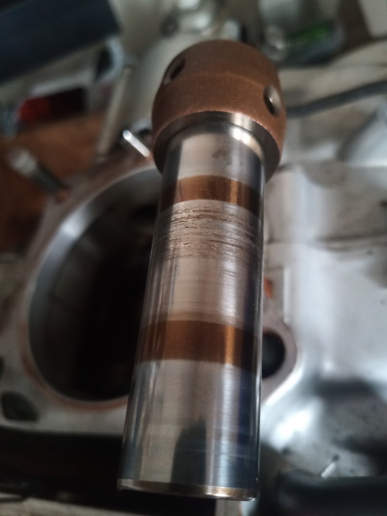 прошу "помощи зала", выслушаю даже бредовые идеи... по мотору: новый поршень/кольца/палец, расточка цилиндра (зазор 0.06), прирезка седел/клапановб новая цепь грм причина ремонта: сапунил, потом дымел на холодную, как появились стуки - разобрал. симптомы после сборки: стучит и на холодную и на горячую (тише), на прогретом моторе на сцеплении (на светофоре) почти не слышно. работа на холодную работа на холодную на передаче с выжатым сцеплением работа прогретого мотора разобрал, думал зазор протого... (не проверял при сборке) поехал перемерял, во всех мыслимых и немыслимых плоскостях и положениях 0.06 хоть обмеряйся поршневая при зазоре 0.06 номер раз поршневая при зазоре 0.06 номер два палец после езды на эмульсии (как завещал FZX Гоша...) только не ржать продавцу жетонов - можно, ему такое уже не смешно...утопление и есть причина всех симптомов, которые постепенно проявились после того как мы с Няшей Ямаховной чуть не утонули в болоте. в последний момент я догадался выключить зажигание и уйти под воду с заглушеным мотором, потому гидроудара не случилось. но на адреналине я (не слив воду из фильтрбокса и выхлопной трубы) нажал не на рычаг сцепления а на рычаг декомпрессора и вся вода пошла в цилиндр после приключения пройдено около 4к конец лирического отступления. теперь вернемся к пациент(ке)... верхнее ухо шатуна и палец: ногтиметр не цепляется, выглядит ужаснее чем на самом деле изза цвета сгоревшего масла. по ногтиметру похоже на хон цилиндра... хз как описать понятнее... размер +0.02 в горизонтальной и +0.03 в вертикальной от пальца (с щупом 0,03 и 0,04 запихнуть палец от руки невозможно) думал походит... или нет? Прикрепленные файлы: