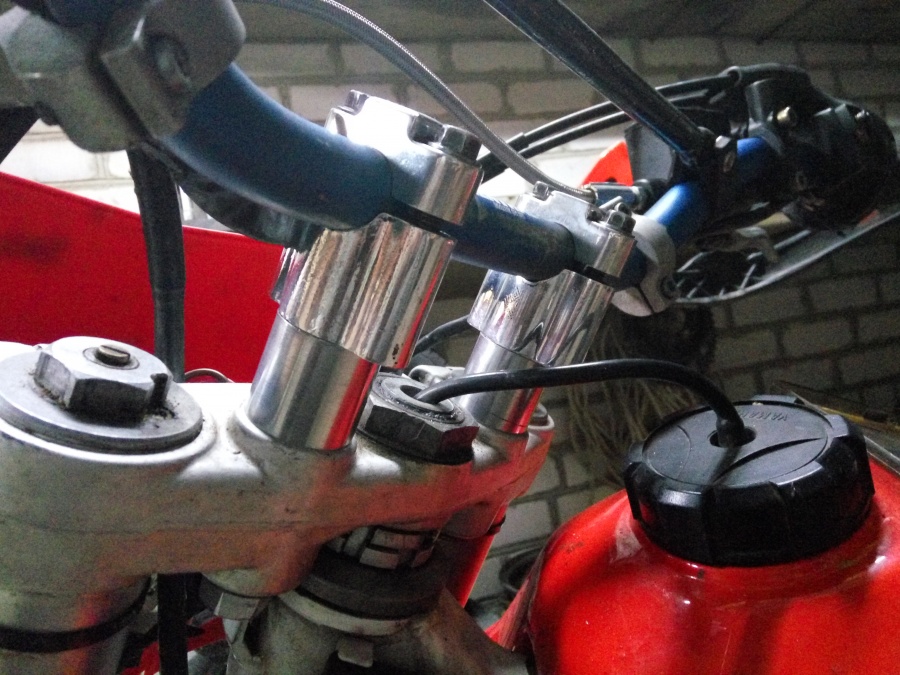 Zeiss, крепления руля от 660-й Тенерки на 25 мм выше ТТ-шных. Если такого подъёма хватит, то лучше такие поставить, чем прокладки городить. Болты 10 мм против 12 у ТТ, но это легко решаемо с помощью втулок.