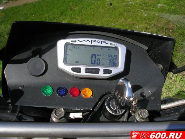 Владимир: Тахометр ставился не на все ХТ. У меня модель 3ТВ 1992г. - без тахометра ( только сигнальная лампа на "перекрут" по оборотам. Брал его больше из-за датчика температуры ( он врукопашную программируется на двойное предупреждение о перегреве), и из-за размеров. Электронные тахометры как правило, показывают обороты с нехилым разбросом, но к этому я уже был готов после просмотра видео на Ютубе. android, расскажи про Trailtech Vapor. Как подключается, какие доработки нужны? В XT же и спидометр и тахометр механические. С установкой всё просто. Взял комплект для моделей с жидкостным охлаждением. Есть и комплекты для воздушек с датчиком под свечу или болт, но я хотел контролировать именно температуру масла. Врезал датчик в разрыв шланга который масло из движка в бак гонит. Спидометр работает по принципу велокомпьютера - датчик крепится к неподвижной трубе вилки, магнит к тормозному диску, длина окружности ( размер колеса) программируется врукопашную от 0 до 3999 мм. Тахометр от коммутатора работать не захотел, сигнальный провод просто обмотал вокруг высоковольтника. Питание автономное от батарейки литиевой и от бортсети ( в этом случае включается подсветка). Работает от 9 до 400 вольт. Переменка, постоянка - неважно. Не боится переполюсовки при подключении.Посмотри на http://trailtech.net/, там уже и другие модели появились, да и вообще вкусностей полно - только плати! Мой за три сезона нареканий не вызвал.Я не "скАчу"...!