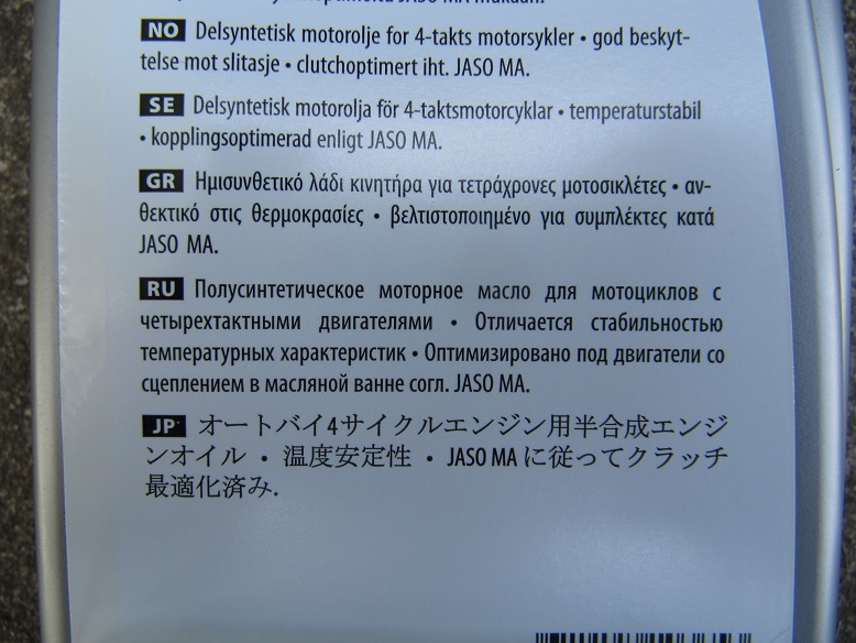 android:я не экспериментирую с автомаслами - выбор мотомасел у нас неплохой. Я тупо беру баклажку с МОТОмаслом и читаю то, что написано на этикетке. API не делает упор на мотомасла, если интересно - тебе в JASO, у них мотоциклетные масла отдельно оговорены ( http://carvek.ru/poleznye-stati-2/klassifikatciya-motornykh-masel/klassifikatciya-masel-po-jaso ). Вышеупомянутая жижа, которую я лью, классифицируется по JASO как MA. Обе маркировки на этикетке стоят рядом через запятую в одном выделенном квадратике. Рядом ещё маркировка МА отдельно. Если интересно, сделаю фото этикетки. Сейчас просто лениво гараж открывать.