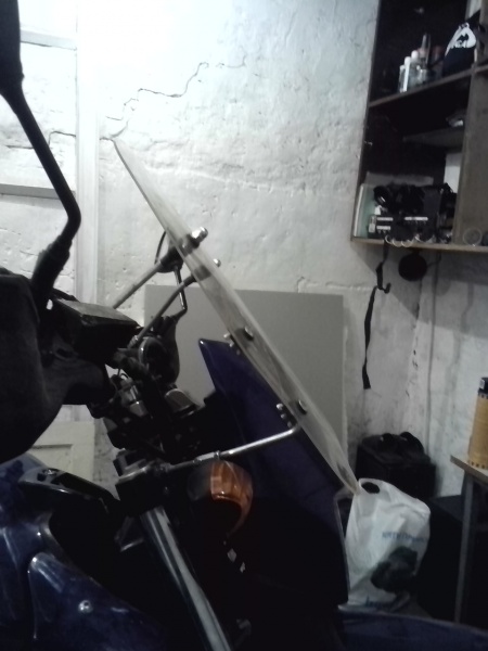 Вот ветровик от всеми не любимого мопеда альфа вместе с креплениями стоит порядка 500 р. дешево и сердито, но надо чуть повыше ставить... крепление чуть доработано и прикручено к траверсе через болты для сжатия вилки.